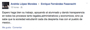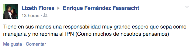Por su parte, Enrique Fernández escribió en su muro de Facebook: “Apreciados miembros de la comunidad de las instituciones de educación superior, agradezco la enorme cantidad de mensajes, a favor y en contra, que he recibido, principalmente de la comunidad del IPN, mi primera Alma Mater (así, con mayúsculas)”.