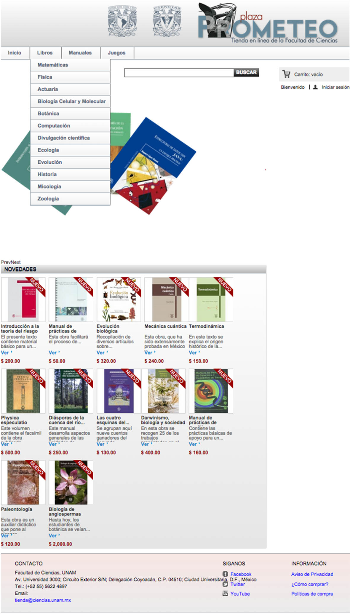 La Facultad de Ciencias (FC), de la UNAM, abrió la primera tienda en línea Universitaria llamada “Plaza Prometeo”, donde se podrán adquirir libros y manuales publicados por esta facultad, pagar eventos y cursos a distancia y, en próximas fechas, obtener camisetas, tazas, plumas, llaveros, gorras y otros artículos de la entidad.