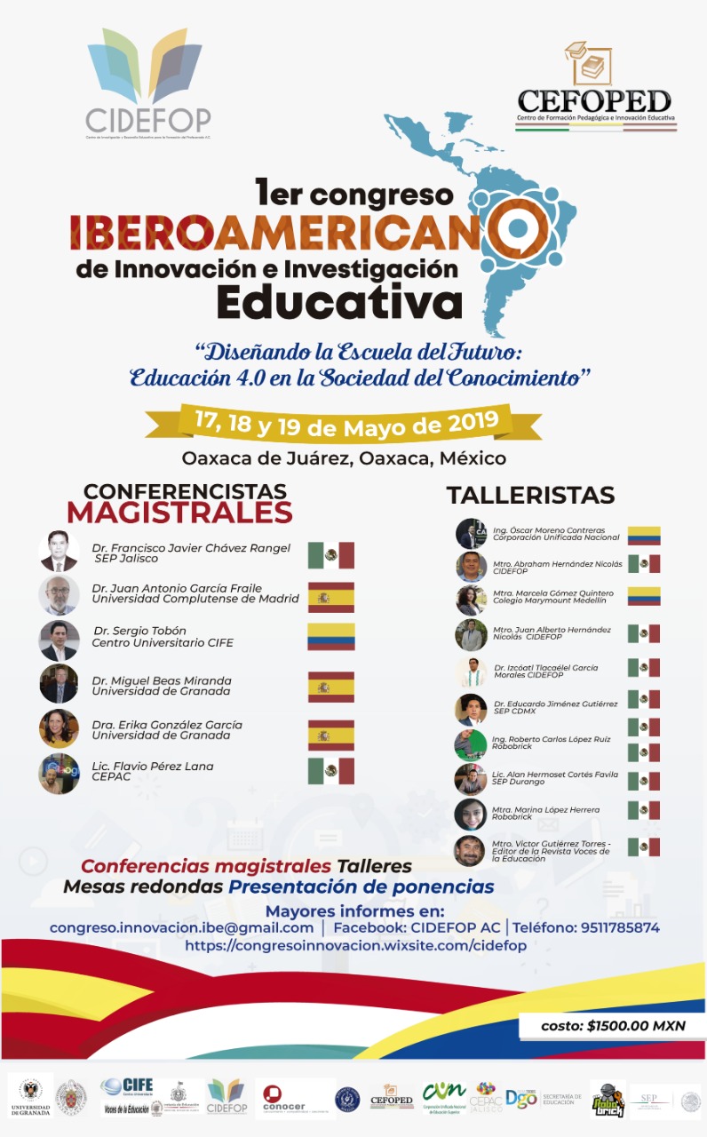 La sociedad actual transita de la información a la sociedad del conocimiento, los retos que ésta plantea son vertiginosos, la escuela debe ofrecer las posibilidades a los estudiantes para desenvolverse con idoneidad en este contexto, por ello, diversas organizaciones nacionales e internacionales de caracter público y privado realizarán en la Ciudad de Oaxaca el Primer Congreso Iberoamericano de Innovación e Investigación Educativa “Diseñando la Escuela del Futuro: Educación 4.0 en la Sociedad del Conocimiento”.