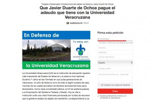 El Colectivo en Defensa de la Universidad Veracruzana recabó un total de 60 mil 442 firmas, las cuales entregó en la oficina de Javier Duarte, por lo cual sus integrantes ofrecieron una rueda de prensa en la que denunciaron la “asfixia financiera” que sufre la institución por culpa del gobierno priista.