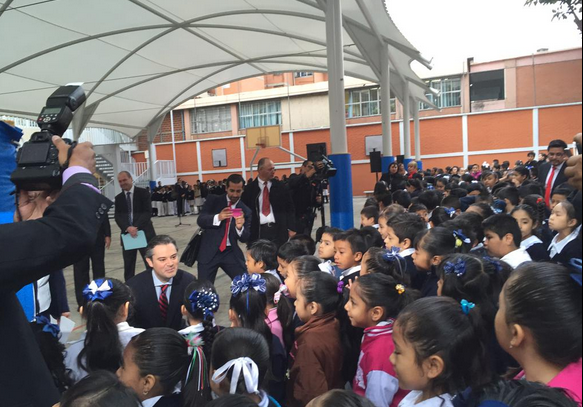 Esta mañana, el titular de la Secretaría de Educación Pública (SEP), Aurelio Nuño, visitó la Escuela Primaria Dr. Agustín Rivera, en la Delegación Cuauhtémoc, donde encabezó la ceremonia cívica y platicó con alumnos y docentes en el marco del diálogo que sostendría en diversas escuelas, como lo ha venido haciendo en días pasados.