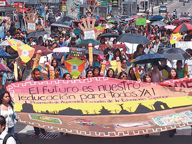 Paralelamente, alrededor de 500 jóvenes marcharon de la Secretaría de Gobernación a la SEP, en exigencia de “opciones reales” para estudiantes rechazados en el pasado proceso de selección.