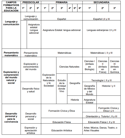 | Fuente: SEP, Plan de Estudios 2011. Educación Básica. |
