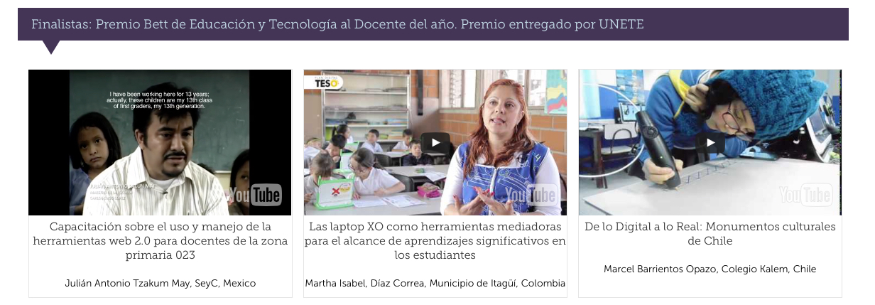 Capacitación sobre el uso y manejo de la herramientas web 2.0 para docentes de la zona primaria 023, presentado por Julián Antonio Tzakum May, de México; Las laptop XO como herramientas mediadoras para el alcance de aprendizajes significativos en los estudiantes, de Martha Isabel Díaz Correa, del Municipio de Itagüí, de Colombia; así como De lo Digital a lo Real: Monumentos culturales de Chile, presentado por Marcel Barrientos Opazo, del Colegio Kalem, de Chile.