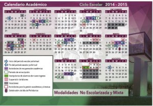 El fin del periodo escolar 2015-1 será el día 11 de marzo, mientras que el periodo escolar 2015-2 iniciaría el 25 de marzo y concluiría el miércoles 22 de julio. El calendario establece un periodo vacacional del 6 al 10 de abril.