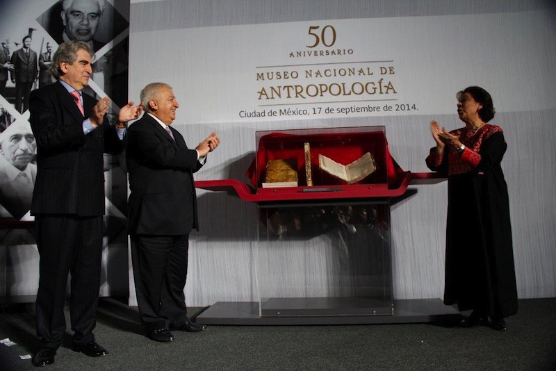 Más tarde, entregó el Códice Chimalpahin, para su custodia, a la Directora General del INAH; se trata de manuscritos del siglo XVII, y entregó 6 medallas conmemorativas a la creación del Museo Nacional de Antropología a Mario Vázquez, Manuel Felguérez, Avecita López Mateos, Javier Ramírez Campuzano, Beatriz Barba de Piña Chan y simbólicamente a Jaime Torres Bodet, la cual permanecerá en el museo.