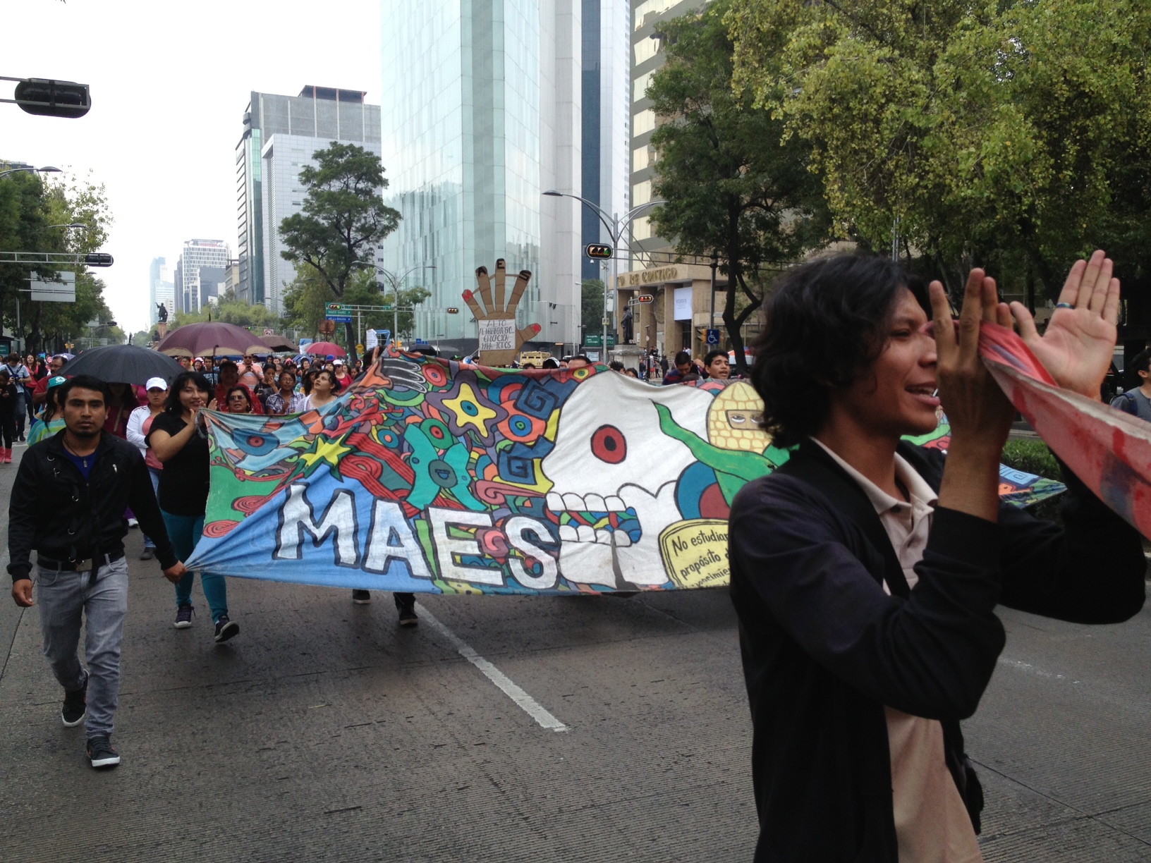 Integrantes del Movimiento de Aspirantes Excluidos de la Educación Superior (MAES) marcharon esta tarde de la Estela de Luz, en avenida Reforma hasta las instalaciones de la Secretaría de Educación Pública (SEP), para exigir un avance en las negociaciones que mantienen con autoridades educativas.
