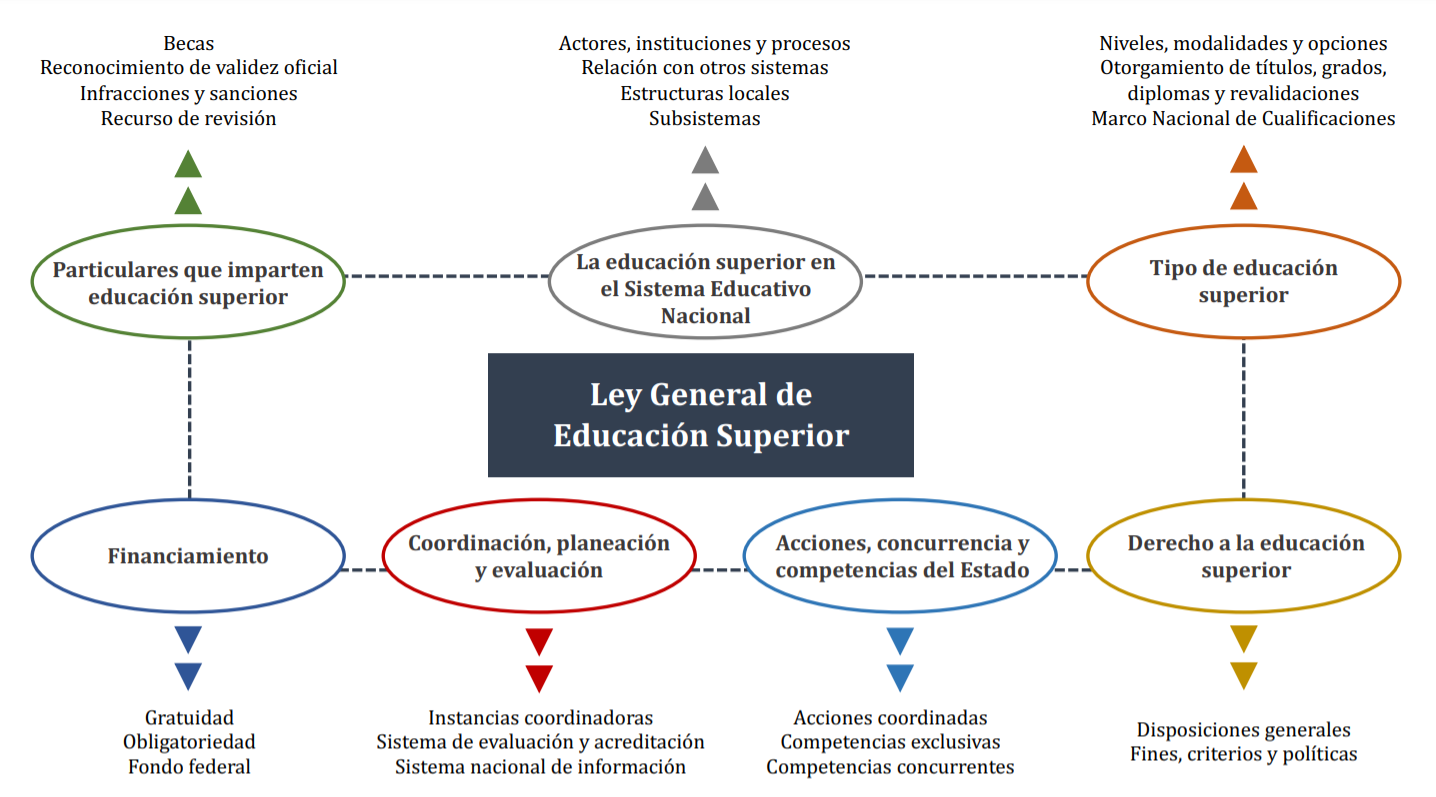 Lograr lo anterior no es sencillo. El sistema de educación superior en México está conformado por instituciones con distintos regímenes jurídicos, recursos, capacidades y necesidades. Si bien son muchos los cambios que la nueva ley incluye, enseguida se referirán algunas cuestiones clave que vale la pena considerar para comprender sus implicaciones para el día a día de las personas, relaciones y procesos que integran las instituciones de educación superior (IES):