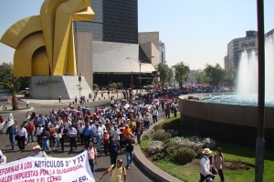 La movilización de la CNTE se hizo presente en la calle de Tacuba para después atravesar el Eje Central Lázaro Cárdenas; siguió de frente por avenida Hidalgo, para enfilarse por Paseo de la Reforma, hasta llegar al Ángel de la Independencia.