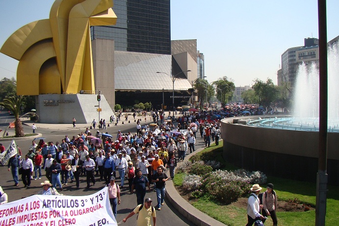 Aunque no se incorporaron al contingente que acompañó a Andrés Manuel López Obrador, los integrantes del magisterio —alrededor de 4 mil personas— tomaron su propio trayecto sin mezclarse con otros grupos. Al final, reiteraron su llamado a un gran paro nacional el próximo miércoles, para expresar su rechazo a las más recientes reformas legales en el país.