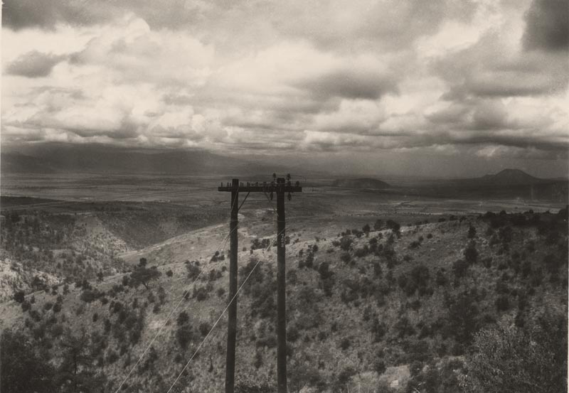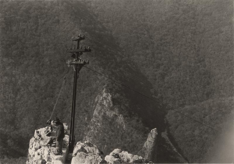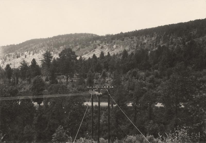 México. Uno de los postes de la línea telefónica San Luis Potosí-Tampico, en México. Vista tomada sobre el “Espinazo del Diablo”, sobr la Sierra Madre Oriental. Fecha: 1927