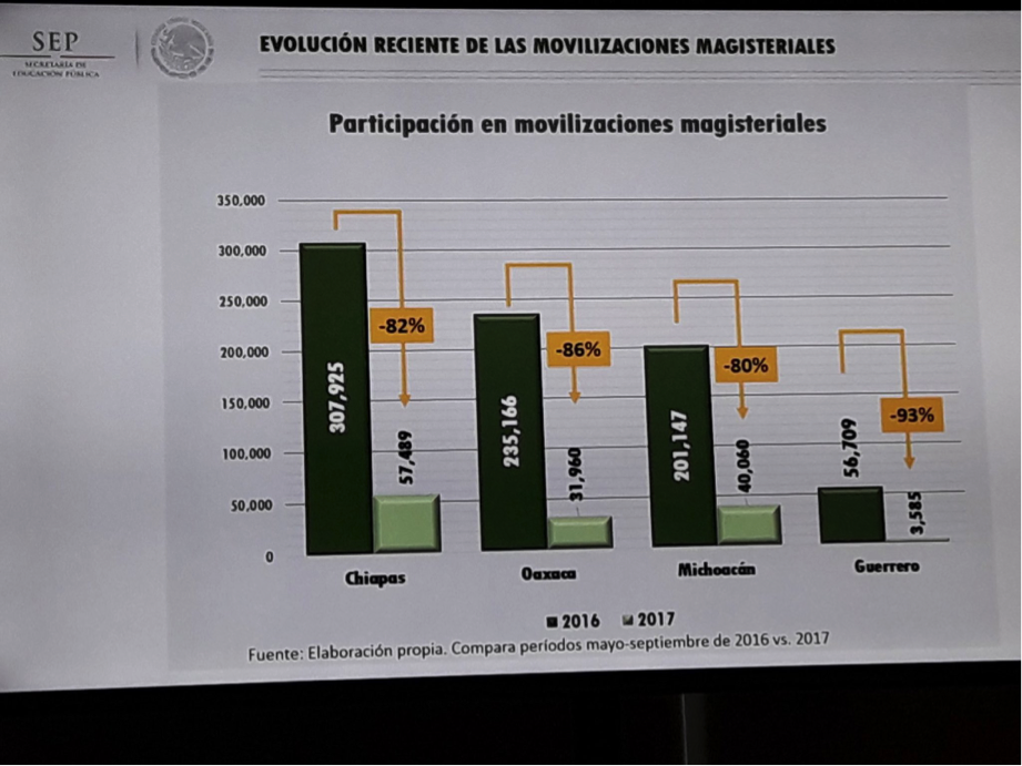 Cada vez son menos los maestros que se movilizan: de un año a otro, reducimos al enemigo en 82, 86, 80 y 93%. La victoria es nuestra.