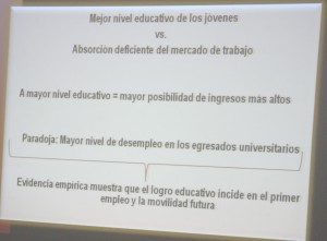 Señaló que el problema no sólo radica en el sistema educativo, sino que se debe analizar el aspecto económico y la generación de puestos de trabajo deficientes.