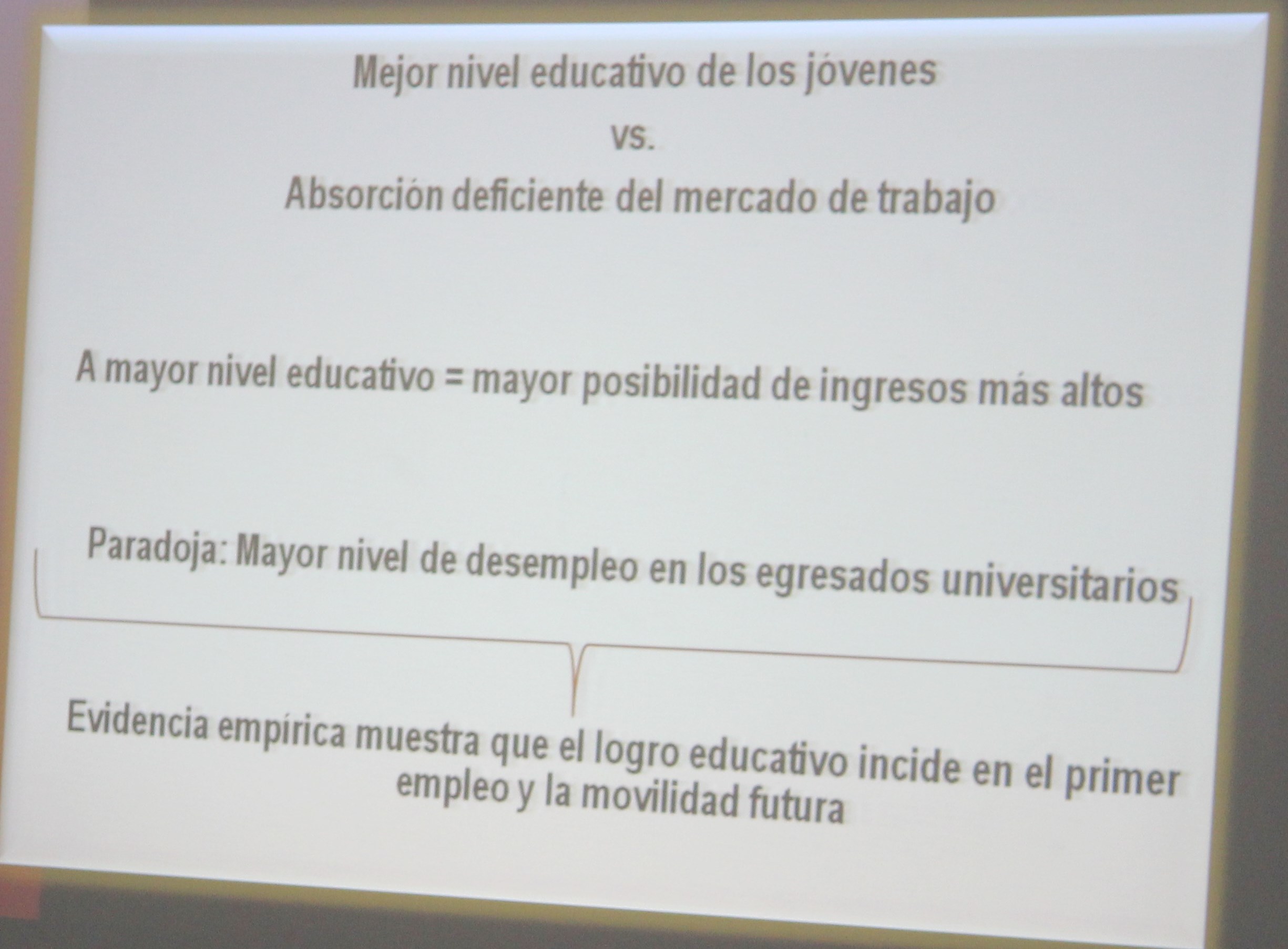 Finalmente, advirtió que uno de los grandes problemas del empleo juvenil es el subempleo, el cual genera precarias oportunidades laborales y una mayor sobrecalificación de la mano de obra.