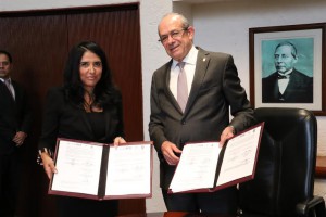 Enrique Fernández Fasnacht, Director General del IPN, y Alejandra Barrales, Secretaria de Educación del Distrito Federal, suscribieron un convenio que establece las bases de colaboración para la generación de una política educativa que redunde en el ingreso, permanencia y conclusión de estudios de jóvenes del DF.