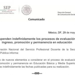 La suspensión efectivamente anula la prueba de ingreso para cerca de 250, 000 aspirantes a maestros que debía realizarse a partir del 15 de junio, y la evaluación de 1.2 millones de maestros en los próximos tres años.