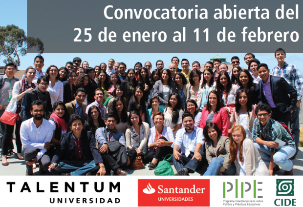 “Talentum-Universidad 2016: Re-imaginando México” es una iniciativa del Programa Interdisciplinario sobre Política y Prácticas Educativas (PIPE), del Centro de Investigación y Docencia Económicas (CIDE), que tiene por objeto contribuir a la formación de un nuevo tipo de élites para México, basadas en el mérito y diversas en su origen social y geográfico.