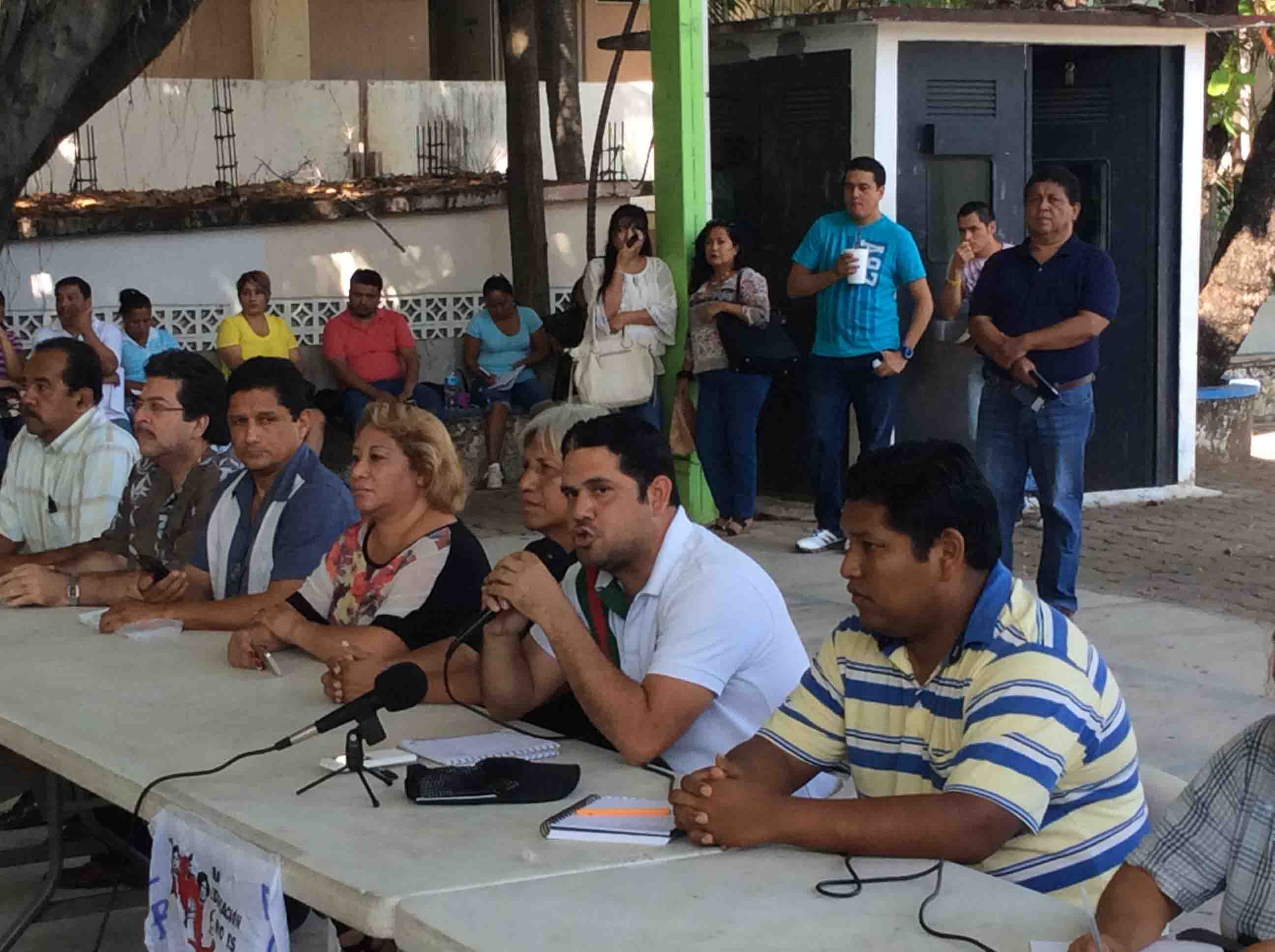 Mediante una conferencia de prensa, las organizaciones dieron a conocer el “Movimiento Unidad Magisterial” contra la reforma educativa. Walter Añore, vocero de la CETEG advirtió que las y los integrantes no acudirán a los procesos de evaluación y que no regresarán a las aulas en agosto, si el gobierno no se desiste de la reforma educativa.