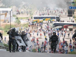 “En el inicio de los operativos los uniformados no estaban armados, pero cambiaron la estrategia porque se detectó gente armada entre los manifestantes. Se trató de gente infiltrada que disparaba contra la policía y contra los civiles”, señaló Enrique Galindo, comisionado de la Policía Federal.