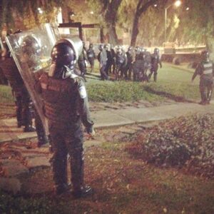 Unos minutos después los granaderos arribaron al lugar y se colocaron formando una valla con sus escudos justo frente al circuito cercano a la Facultad de Psicología de la UNAM.