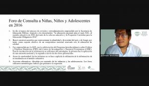 Durante el Encuentro Nacional de Estudiantes de Posgrado (ENEPE) realizado dentro del XVI Congreso Nacional de Investigación Educativa (CNIE) organizado por el Consejo Mexicano de Investigación Educativa (COMIE), Tenorio afirmó que el ejercicio del derecho a la participación de los NNA no se ha podido hacer realidad debido a las pocas y limitadas formas de participación con las que cuentan los NNA.