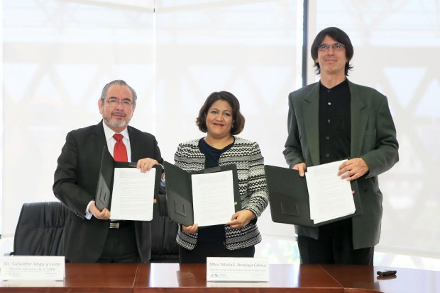 Para tal efecto firmaron un convenio de colaboración Salvador Vega y León, Rector General de la UAM; María Eugenia Araizaga Caloca, Directora General de Administración del Conaculta, y Eduardo García Barrios, Coordinador Nacional del SNFM.