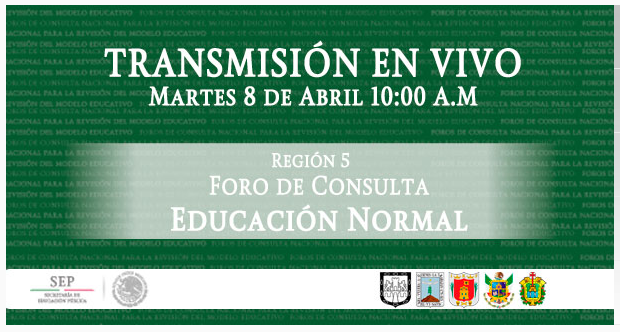 En esta ocasión toca el turno a los representantes de la región 5, referente a educación normal que comprende el Distrito Federal, Morelos, Querétaro, Tlaxcala y Veracruz, donde se podrán conocer las propuestas realizadas por los alumnos, padres de familia, docentes, investigadores, legisladores, autoridades, organizaciones sociales y todos aquellos interesados en expresar inquietudes en torno al tema educativo.