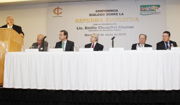 Acompañado por el premio Nobel de Química, Mario Molina; los empresarios Enrique Madero y Lorenzo Sertvije, y el presidente del Sindicato Nacional de Trabajadores de la Educación, Juan Díaz de la Torre, Chuayffet Chemor explicó los principales programas de la Reforma Educativa, la cual, insistió, no es contra los maestros, sino para servir al magisterio mexicano.