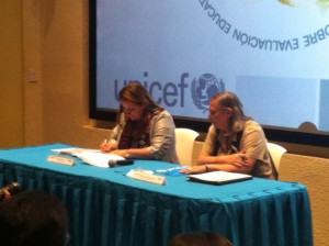 Esta campaña fue anunciada hoy con la firma de un convenio que suscribieron la representante de la Unicef en México, Isabel Crowley, y la consejera presidenta del INEE, Sylvia Schmelkes, quien destacó que son los niños de los pueblos indígenas, quienes nos pueden decir “qué les gusta y qué no les gusta del hecho educativo… lo que aprenden y lo que quisieran aprender”, señaló.