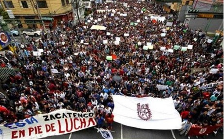 Estudiantes de distintos planteles del Instituto Politécnico Nacional (IPN) inician su marcha por Manuel Carpio e Instituto Tecnológico, con destino al Monumento a la Revolución, luego de que desde las 10 de la mañana comenzó la concentración en el Casco de Santo Tomás.