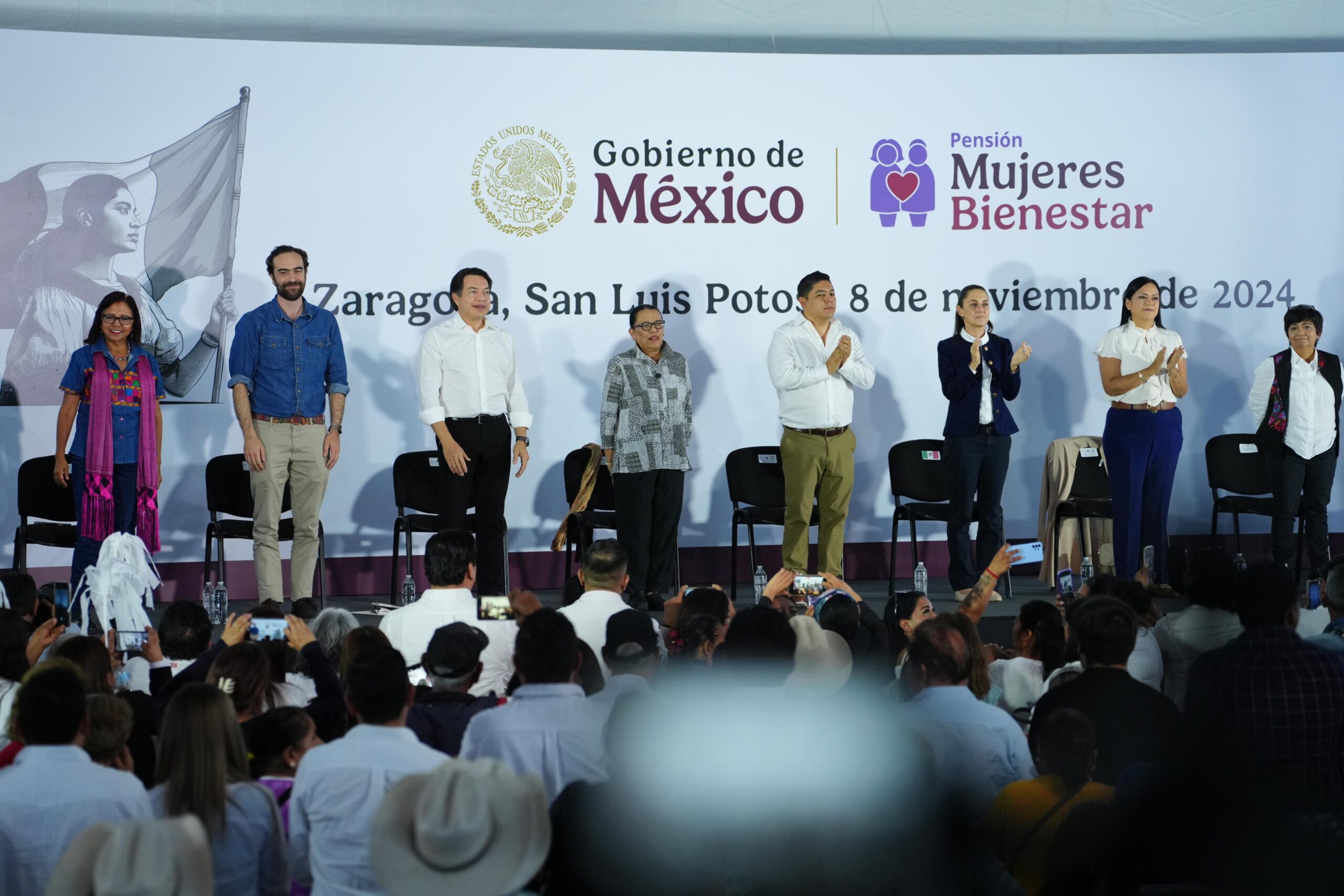 Durante el evento Pensión Mujeres Bienestar en el municipio de Villa de Zaragoza, San Luis Potosí, señaló que la Presidenta Claudia Sheinbaum Pardo determinó que parte fundamental de su gobierno sea la educación, por lo que “uno de sus primeros programas es que todas y todos los niños y adolescentes de secundarias públicas de nuestro país reciban una beca para que sigan estudiando y terminen la secundaria”.