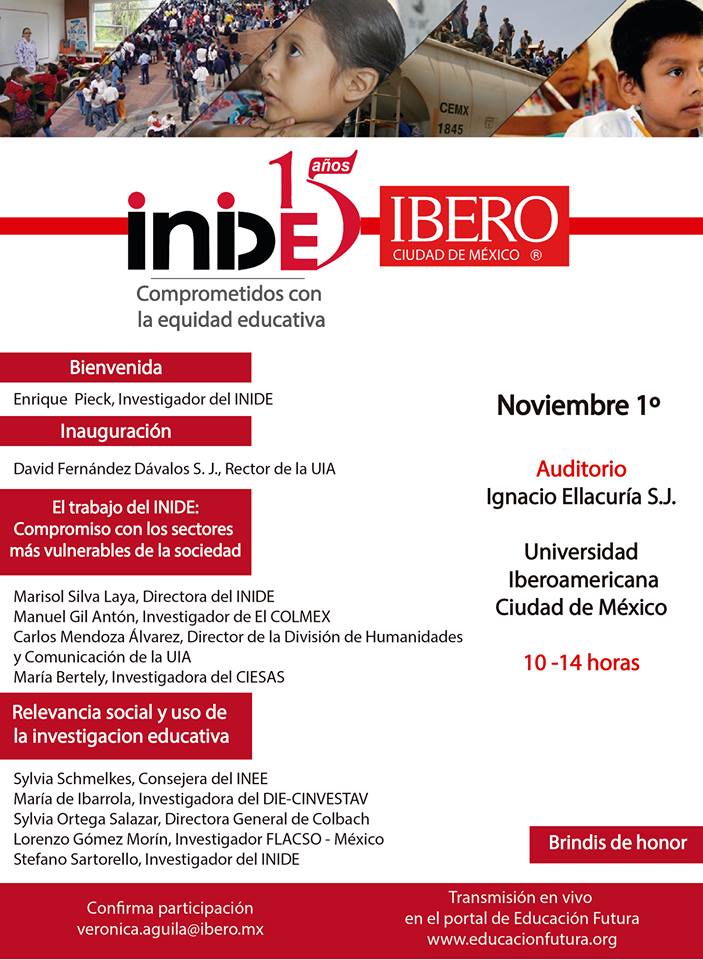 En el marco del XV aniversario del Instituto de Investigaciones para el Desarrollo de la Educación (INIDE) de la Universidad Iberoamericana, se llevará a cabo un encuentro entre académicos y actores educativos donde se discutirán los retos del sistema educativo en nuestro país.