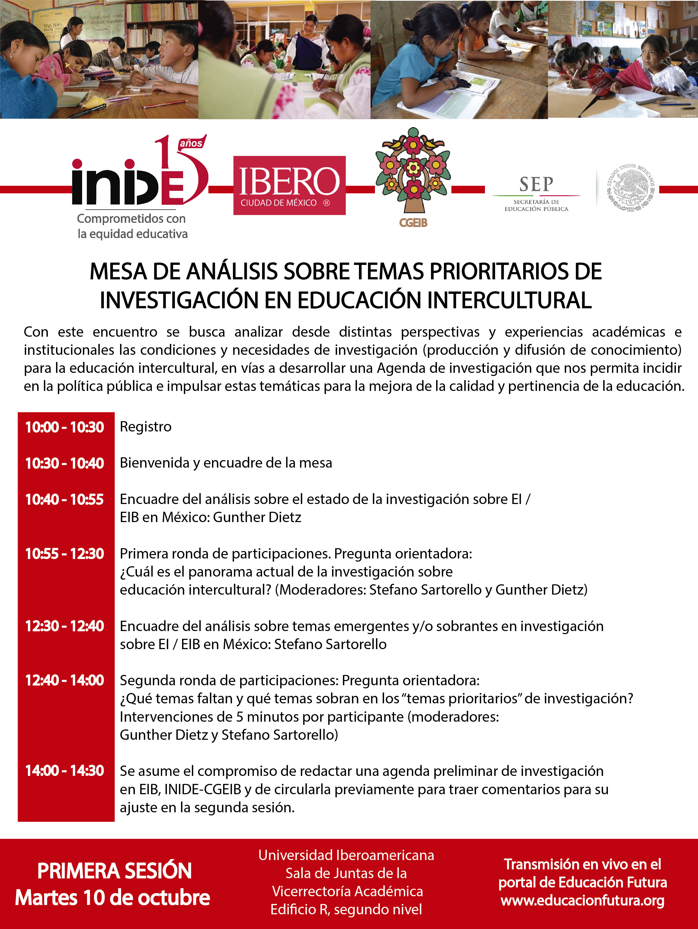 La Universidad Iberoamericana Ciudad de México a través del Instituto de Investigaciones para el Desarrollo de la Educación (INIDE), realizarán una mesa de análisis sobre temas prioritarios de investigación en Educación Intercultural, el cual se realizará el próximo 10 de octubre en las Instalaciones de la UIA.