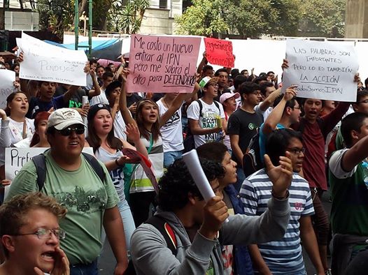Esta tarde más de 15 mil estudiantes de Instituto Politécnico Nacional marchan desde el Casco de Santo Tomás hacia las inmediaciones de la Secretaría de Gobernación, donde alrededor de las 18 horas podrían reunirse con el titular de la dependencia, Miguel Ángel Osorio Chong, para entregar las exigencias sobre la derogación del Reglamento Interno del Instituto, así como manifestar su inconformidad por las modificaciones a los planes de estudio.