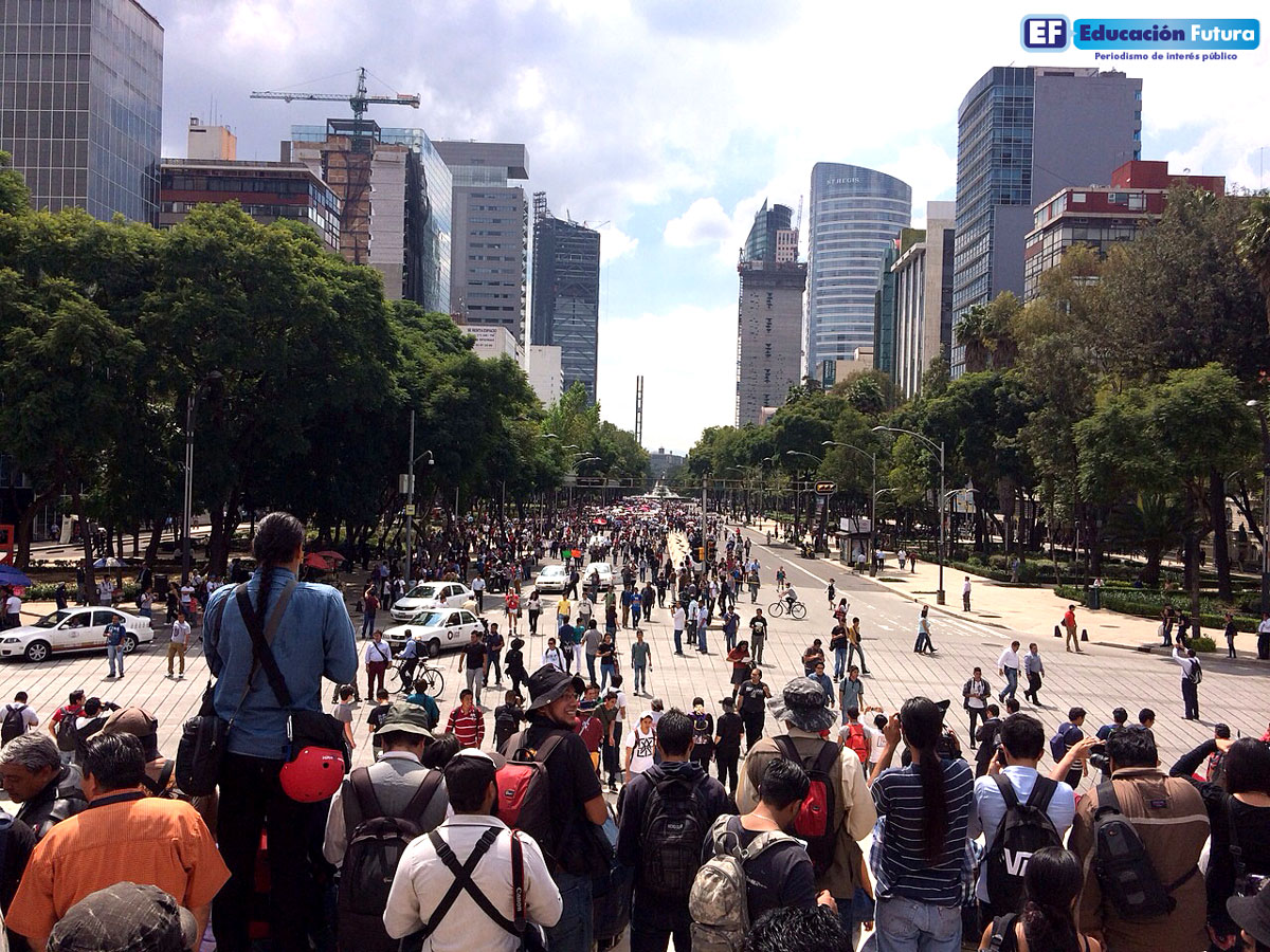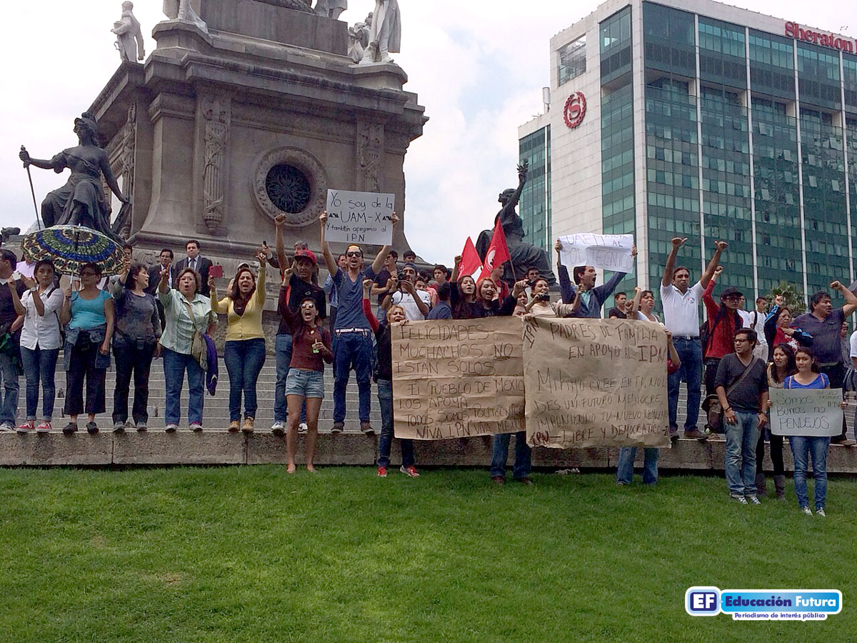 Previamente, alrededor de las 15:30 horas arribaron al Ángel de la Independencia para realizar un acto simbólico de protesta y externar las diversas inconformidades del sistema educativo.