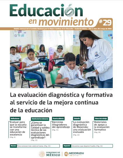 La Comisión Nacional para la Mejora Continua de la Educación publica su boletín electrónico Educación en movimiento número 29, cuyo contenido está dedicado al tema de la evaluación diagnóstica, formativa e integral diseñada y puesta en marcha por este organismo. Ésta aporta información sobre la situación de los aprendizajes de las y los alumnos, de total relevancia para definir estrategias de intervención pedagógica orientadas a la mejora educativa.