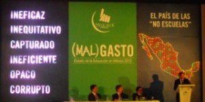 El libro es un estudio del gasto educativo en nuestro país en el que se afirma, entre muchos datos, que “gastamos mucho en educación, pero gastamos muy mal” por lo que tenemos en términos de los exponentes, un país que tiene más de 59% en la categoría de “no escuelas” definidas por ser “espacios que no tienen el mínimo necesario para el aprendizaje” es decir, donde “ las personas no enseñan ni aprenden, las condiciones materiales no son suficientes, las relaciones y procesos difícilmente se dan y no existe apoyo educativo”.