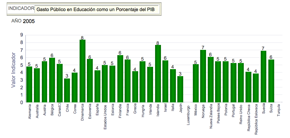 Alemania, Japón, Corea, Canadá, son países que invierten el 5 por ciento (o menos) de su Producto Interno Bruto (PIB) en la Educación de sus países, esta cifra es igual a la inversión que México hizo hasta 2009.