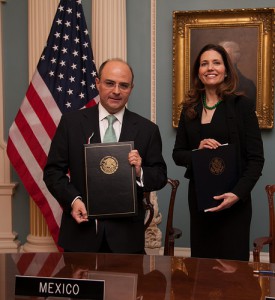 El subsecretario para América del Norte, Sergio Alcocer Martínez de Castro, y la secretaria de Estado Adjunta para Asuntos Educativos y Culturales, Evan Ryan, firmaron este lunes, en Washington, un memorándum de entendimiento para la creación del Programa de Prácticas Profesionales México-Estados Unidos.