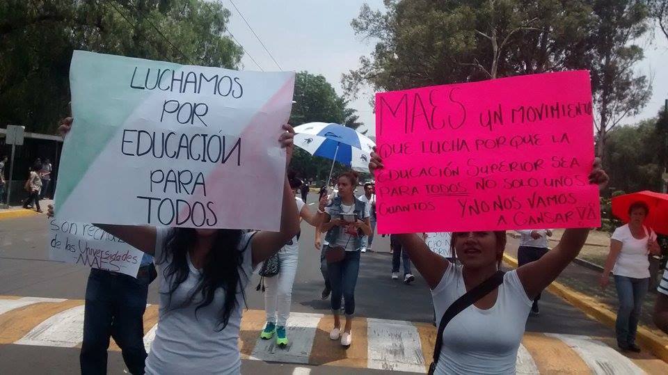 El Movimiento de Aspirantes Excluidos de la Educación Superior (MAES) marchó de la Plaza Roja, en Zacatenco, a la Dirección General del Instituto Politécnico Nacional (IPN).