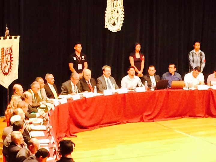 Este lunes 8 de diciembre, los trabajos entre estudiantes y el director del politécnico, Fernández Fassnacht, continuaron en el auditorio Alejo Peralta, donde los jóvenes pidieron la destitución de 27 de los 44 directores de las escuelas del IPN.