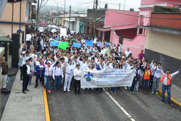 Una multitudinaria manifestación compuesta por estudiantes, académicos y personal administrativo de la Universidad Veracruzana exigió que Javier Duarte, Gobernador de Veracruz, pague los más de 2 mil millones de pesos que adeuda a la institución.