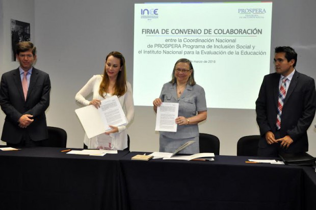 Schmelkes firmó con Paula Hernández Olmos, Coordinadora Nacional de Programa de Inclusión Social (Prospera), un convenio de colaboración, con el objetivo de establecer las bases generales y mecanismos para el desarrollo de proyectos y acciones de interés y beneficio mutuo, relacionados con la docencia, investigación y vinculación en materia de evaluación del Sistema Educativo Nacional.