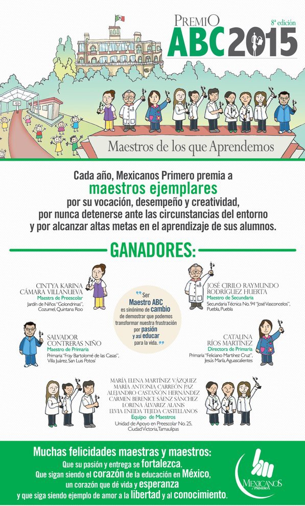 Las y los ganadores del Premio ABC 2015 otorgado por Mexicanos Primero, fueron reconocidos ayer, 21 de octubre, durante una ceremonia realizada en el Castillo de Chapultepec.