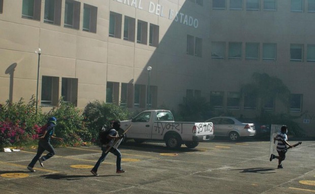 Más de 500 estudiantes de la Normal Rural de Ayotzinapa destruyeron las instalaciones de la Fiscalía General del Estado de Guerrero.
