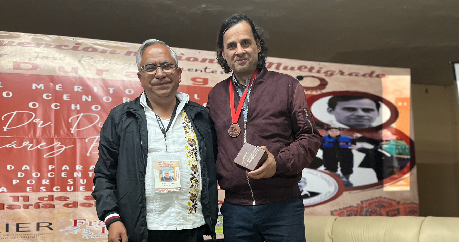 En el marco de la 2da Convención Nacional Multigrado realizada en Durango, el investigador de la Universidad Iberoamericana, Diego Juárez Bolaños, recibió la medalla al Mérito Multigrado “Maestro Cenobio Popoca” , por su compromiso y dedicación inquebrantable a las escuelas multigrado.