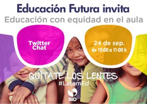El Banco Interamericano de Desarrollo, @BIDEducacion y @BIDIgualdad, invita al Twitter Chat: Educación con equidad en el aula, en el cual participará Educación Futura, el jueves 24 de septiembre de las 10:00 a las 11:00 horas.