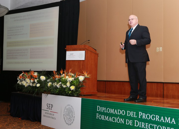 En el marco del Diplomado del programa de actualización y profesionalización directiva, el funcionario federal ofreció una conferencia en la que exhortó a los directores a que enfrenten fenómenos como el abandono escolar, y a estar atentos en la gestión de fondos de infraestructura y de autonomía de gestión para mejorar sus planteles. Asimismo los responsabilizó de aprovechar al máximo la capacidad instalada de sus escuelas, así como de ayudar a generar más oportunidades de acceso a los jóvenes.