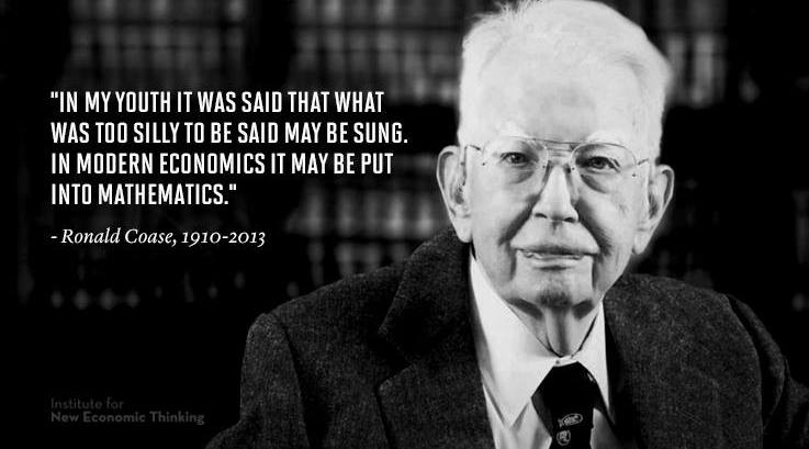 Ronald Coase escribió en 1960 el artículo, quizá, más importante de todos los tiempos sobre economía y derecho, si tan sólo por ser el artículo de análisis del derecho, más citado en la historia (http://www.law.uchicago.edu/lawecon/coaseinmemoriam/problemofsocialcost). Yo solía decirles a mis alumnos de ciencia política, economía y derecho que si querían leer un sólo artículo que explicara la esencia del pensamiento económico y su relación con la realidad, leyeran el “Problema del Costo Social” de Coase.