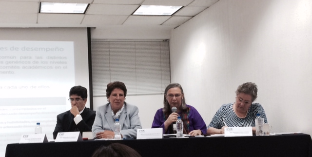 Acompañada de las consejeras del organismo Teresa Bracho y Margarita Zorrilla , así como de Jorge Hernández Uralde, titular de la Unidad del Sistema Educativo Nacional, Schmelkes destacó que “la calificación de los instrumentos de evaluación se fundamenta en el Perfil establecido por la SEP para el Ingreso al Servicio Profesional Docente”. Los aspirantes a una plaza docente presentaron dos exámenes nacionales que valoraron lo siguiente: